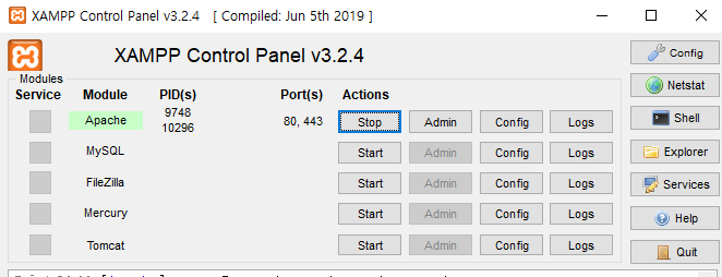 그 후 xampp 를 시작한다.