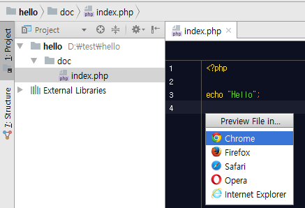 File > New Project > PHP Empty Project