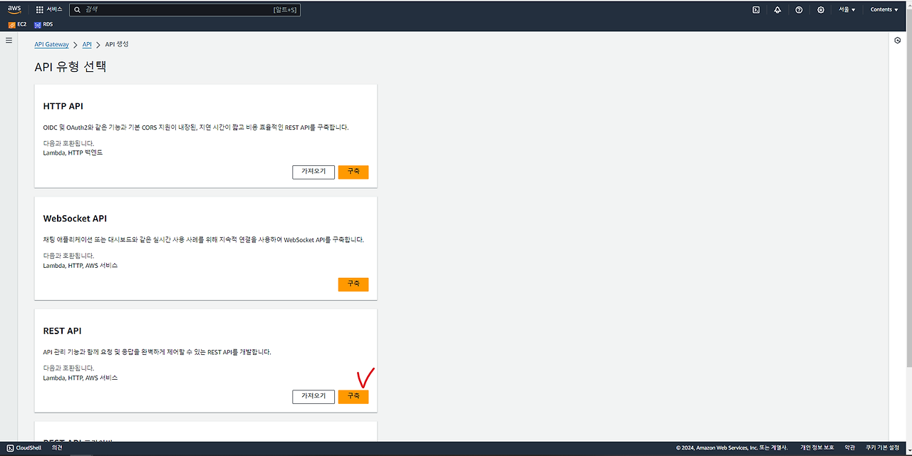 - api gateway : API 만들어주는 친구. 외부 클라이언트로부터 요청을 받아 람다 함수로 연결해줌